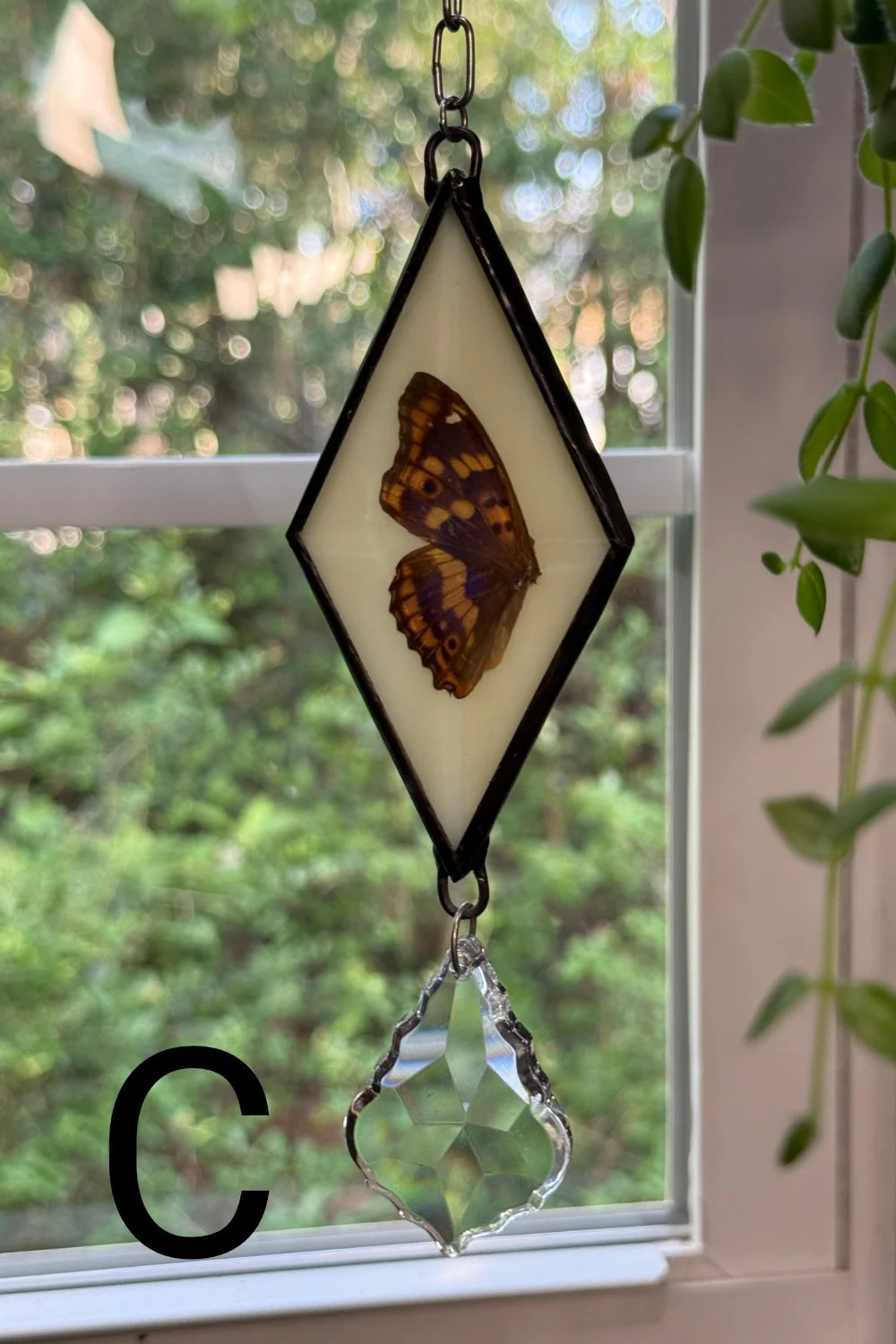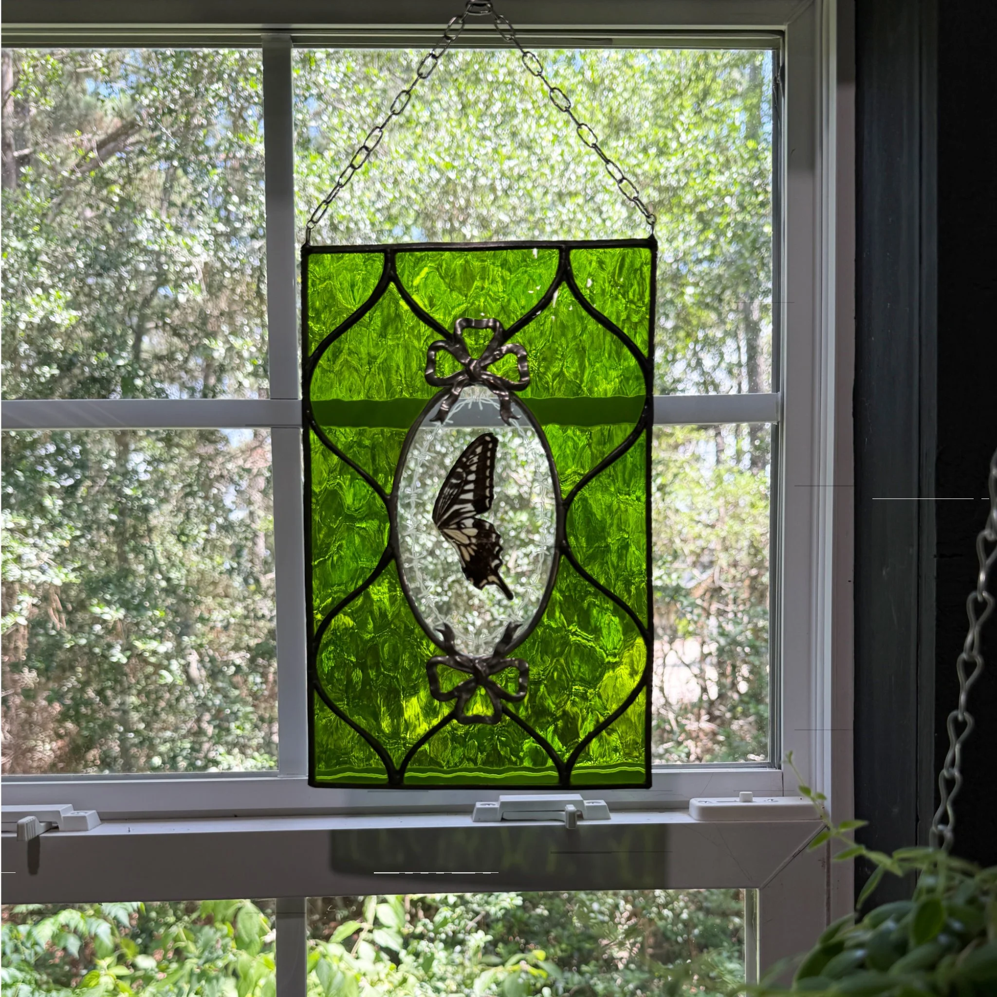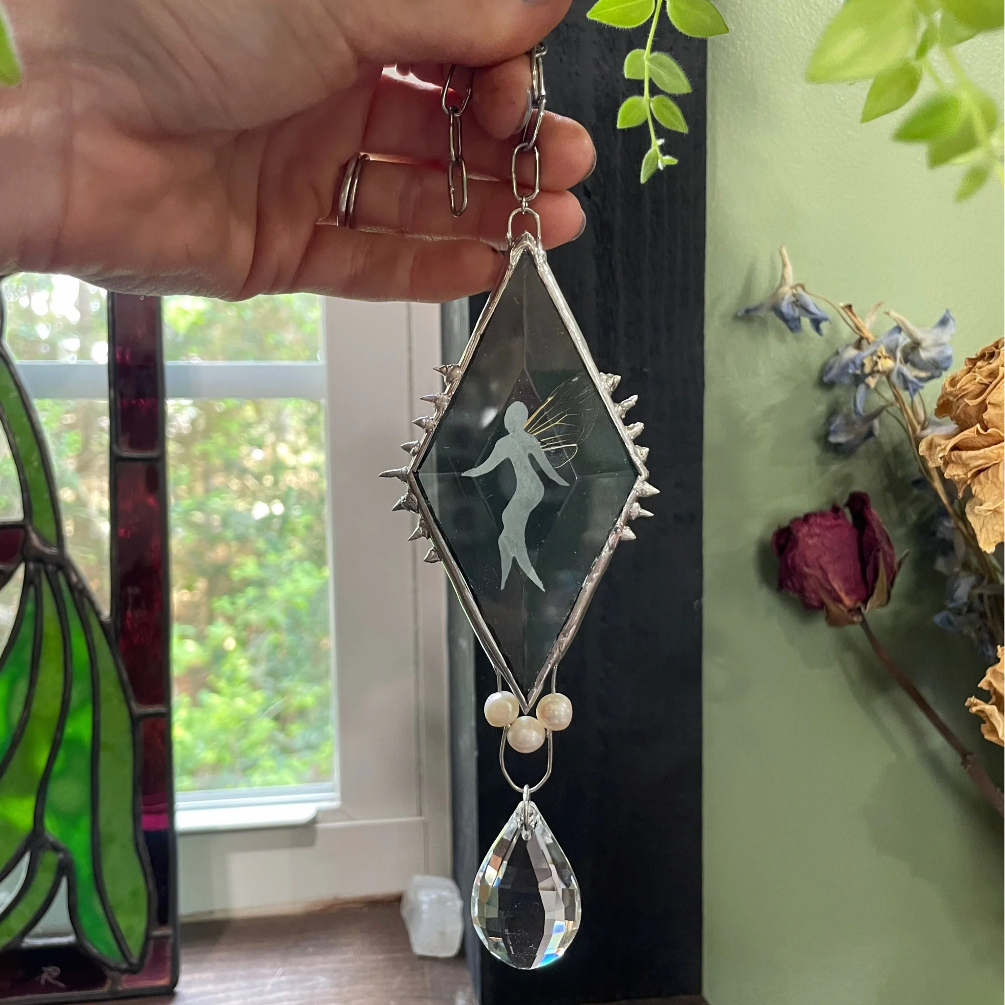 Shop Categories: All Stained Glass Panel Rainbow Maker Suncatcher All | Stained Glass Panel | Rainbow Maker | Suncatcher | Skull Sticker $2.00 The Bloomers Waltz Sticker $2.50 Moon Plant Stake $36.00 Lifeseed in The Bone Garden Stained Glass Panel $500.00 Metal Fairy Rainbow Maker $50.00 Ethereal Lace Stained Glass Suncatcer $200.00 Sold out Eternal Pas de Deux Stained Glass Panel $300.00 Butterfly Bevel Stained Glass Suncatcher $145.00 Butterfly Bevel Rainbow Maker $45.00 Barbed Butterfly Cameo Stained Glass Suncatcher $150.00